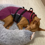 Flora ist extrem ruhig. Braucht wenig Spaziergang. Bellt nie. Keine Angst von andere Tiere. Oder Menschen. Wenig Angst vom Lärm. Lastwagen.