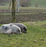 Meine 2 Minipig (je ca 100kg) benötigen Betreuung, spazieren, beschäftigen, Stall frisch machen, verwöhnen, auf die Weide bringen, Gesundheit überprüfen. Jeden zweiten Tag, Aufwand max 1 1/2 Stunden pro Mal.